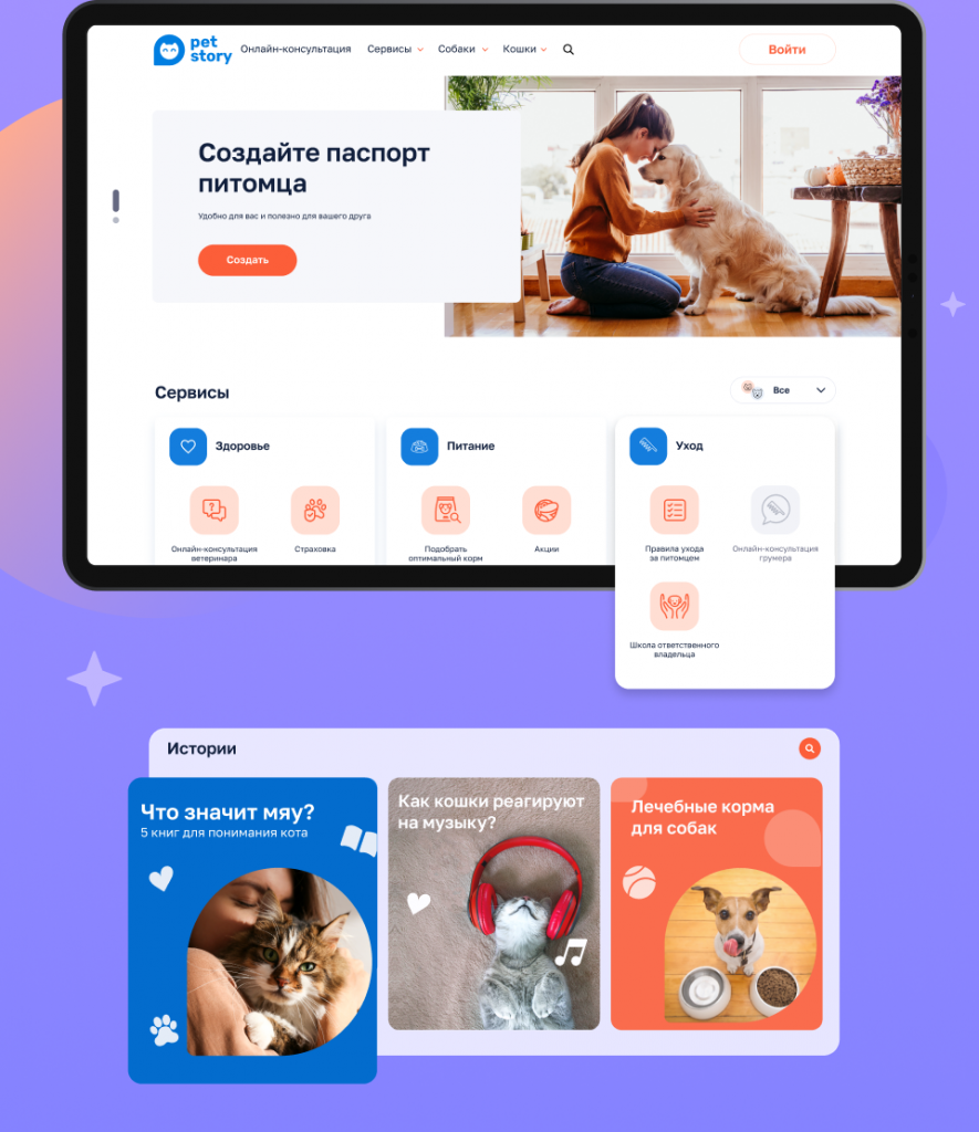 Petstory — это лучший проект, много было придумано и реализовано совместно с клиентом. А еще круто осознавать, что ты помогаешь не только людям, но и братьям нашим меньшим. И результат помощи виден сразу, у нас есть история на проекте, когда мы в онлайне смогли помочь принять роды у собаки. И пользователь, и мы были счастливы, что всё получилось круто.