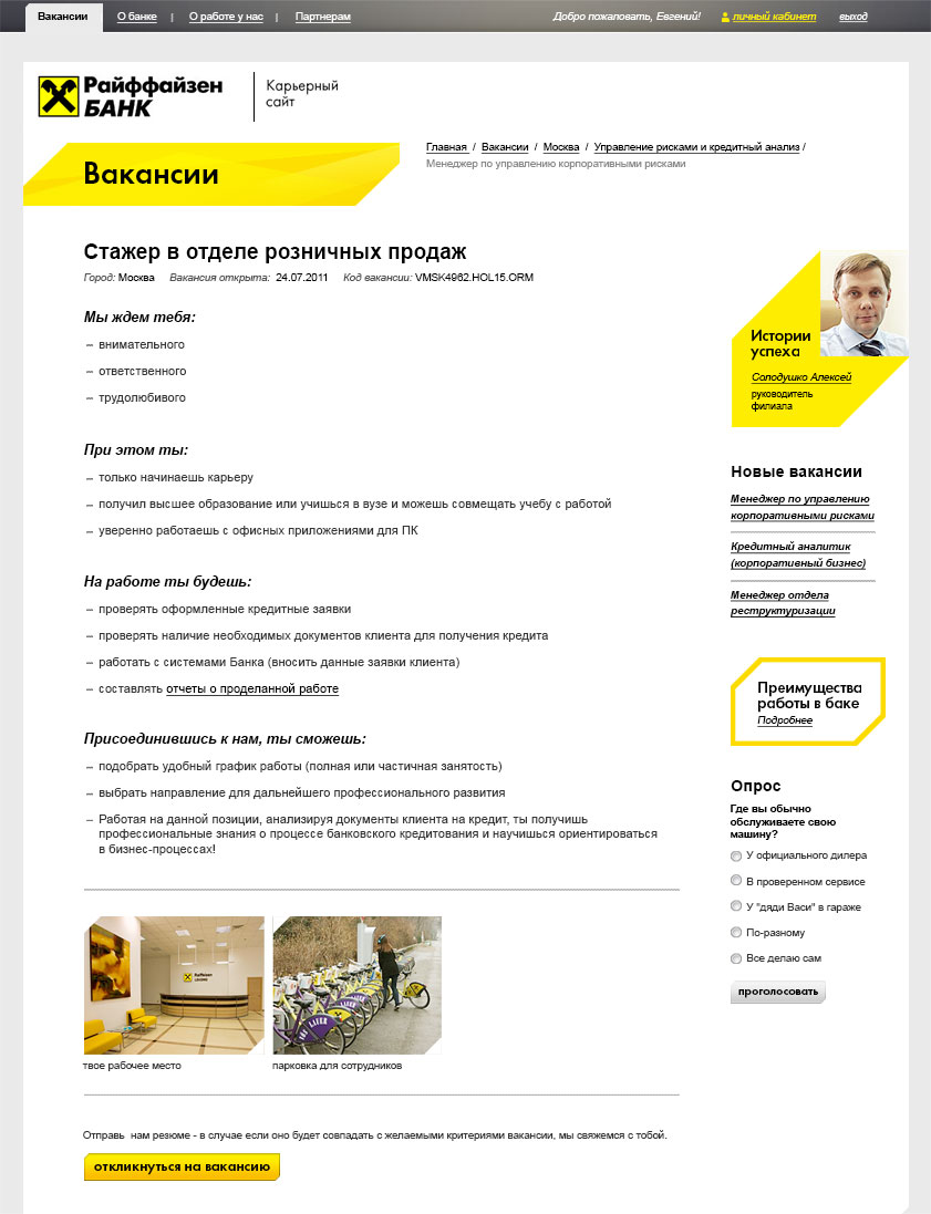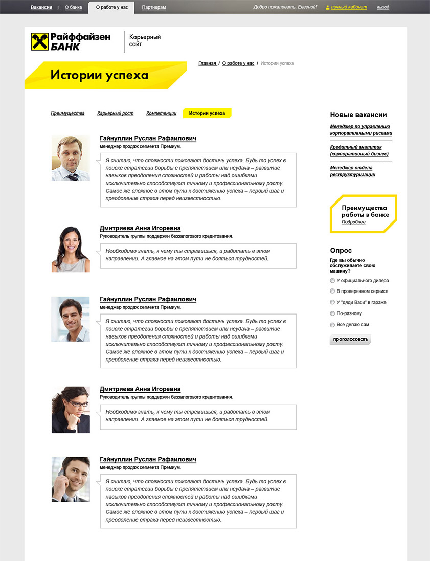 Разработать сайт для единой карьерной службы HR Райффайзенбанка, который бы упрощал процесс подбора персонала всем отделениям банка.