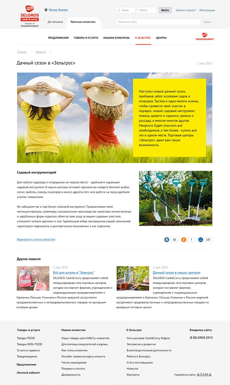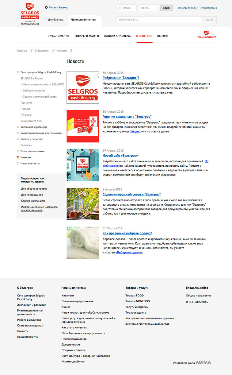 Сайт Selgros был полностью обновлен в мае и стал частью масштабной рекламной кампании, посвященной ребрендингу сети. Наше сотрудничество продолжается, за счет дальнейшей интеграции с внутренними системами компании на сайте появятся новые сервисы для более 1 млн клиентов компании в России.